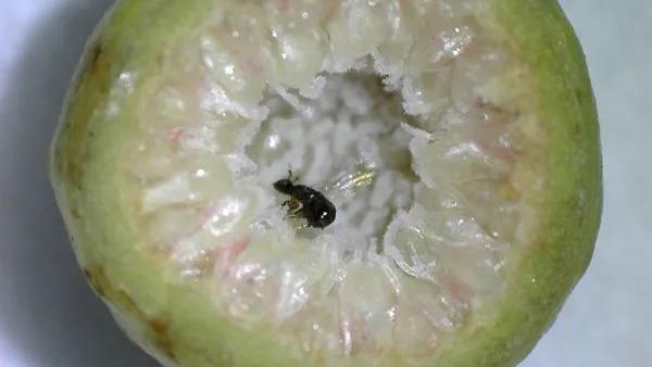 榕果B期时中央有一小孔,有足够空间使各组分生长,待生长到一定程度时,相互挤压限制生长,因此D期发育较为成熟,各组分都已发育到接近极限。榕果内的小蜂是雌雄成对存在的,这对于它们的后代繁殖有重要意义。
